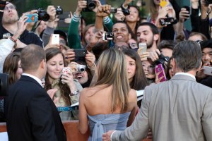 Fans jostle for a photograph of Jennifer Anniston during the final weekend of TIFF