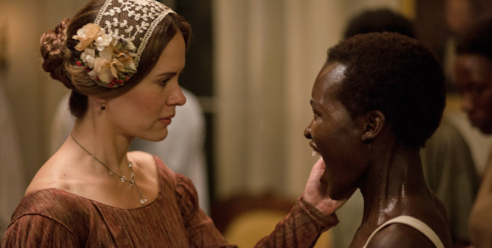 At a cotton plantation he meets a pretty young woman named Patsey (Lupita Nyong’o). She is the fastest worker in the cotton fields (most of the rest got flogged each day for not picking enough). She’s also a “favourite” of Epps, a cruel plantation owner (Michael Fassbender) and a captive to his wishes. But Patsey has to fear equally Epp’s, wife who has it in for her. Solomon observes it all.