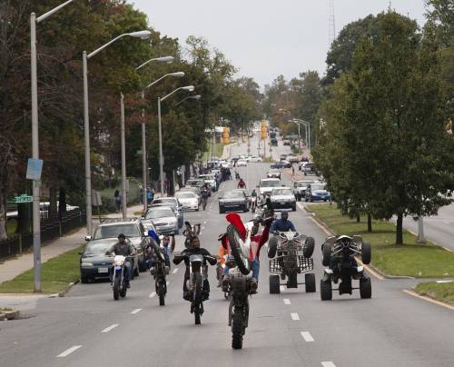 This is a neighbourhood where you learn “the right way to do the wrong things.” And in Baltimore, the thing to learn is dirt biking.