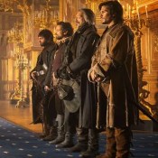 It’s the 1620s in France. Charles d’Artagnan (François Civil) is a brash young man from Gascony travelling on horseback to Paris. He wants to join the famed musketeers, an elite force serving under Louis XIII (Louis Garrel). On the way he witnesses a crime involving a stage coach, a sealed letter, and a mysterious woman in a black-hooded cape. When he comes to the rescue of a besieged woman in the coach, she shoots him! He is buried alive, but that doesn’t stop him. He makes his way to the palace, looking worse for the wear, and manages to sneak in to present his credentials. However, though a fine fighter, he can be both clumsy and arrogant and somehow offends three separate men, each of whom challenges him to a duel. He shows up at the assigned hour, prepared to die. Turns out the three men all know each other: Athos (Vincent Cassel) Porthos (Pio Marmaï) and Aramis (Romain Duris) all widely known for their sword skills and lusty habits. But before the duels can begin they are accosted by a small army of soldiers, working for Cardinal Richelieu. All for one they say, and d’Artagnan joins them in the fight, soon proving his