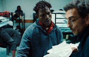 Originally from Guinee, he arrived in France as a refugee seeking asylum. His beloved girlfriend back home (they speak by phone) is talking about marrying someone else, and his mother seems particularly out of touch when he speaks with her. He is homeless, and sleeps in a dormitory far from the Gare du Nord. But he never gets a full night’s sleep because he is forced to wake up in the middle of the night to electronically reserve his next night’s bed. He catches a bus ride to and from the shelter, and if he’s late he’s forced to sleep in the rough.