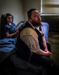 Menashe (Menashe Lustig) is a single dad who lives in a self-contained Hasidic community in Brooklyn. He’s chubby with an unkempt red beard and rimless glasses. He has a low-paying job at a local grocery store unloading boxes, sweeping the floor and as a cashier. And for fun, he studies religious books, and sings songs with his friends over a cup of schnapps. He’s coping with his economic troubles, but faces an even bigger one: the community disapproves of single parent households. He has lived alone with his young son Rievele (Ruben Niborski) his only source of happiness since his wife died earlier that year. But they’re pressuring him to marry again, and arranging dates. He wants none of that — can’t they just leave him alone? Apparently not. And to force the issue, his brother in law Yitsig has forced his son to move in with his family until Menashe