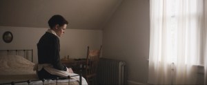 It’s 1892 in Fall River, Massachusetts. Lizzie Borden (Chloë Sevigny) lives with her sister Emma, her stepmother Abby, and her rich and successful father (Jamey Sheridan). He’s a successful financier resented by the neighbouring farmers. Lizzie is a pale woman with curly red hair and an uptight manner. She whiles away her hours reading poetry and cooing with the pigeons she