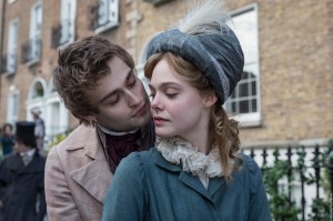 Mary Wollstonecraft Godwin (Elle Fanning: Ginger and Rosa, Neon Demon, 20th Century Women, The Beguiled) is a teenaged girl in 19th century London. She wears her blond hair braided and her dresses loose. She can be found curled up against a gravestone reading a book. She’s the daughter of feminist Mary