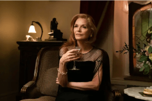 Frances (Michelle Pfeiffer) is a Park Avenue socialite known for her attitude. She can cut down the fiercest critic with a withering glance, and if snubbed by a waiter she’s apt to set her table on fire. She’s not one to be underestimated. When her husband died she withdrew her nondescript son Malcolm (Lucas Hedges) from prep school and brought him home. Eight years later, the coffers run dry, and she’s insolvent. So she sells her jewelry and paintings and pulls a “French exit” —an unannounced getaway — on an ocean liner with a satchel full of Euros. She’s accompanied by Malcolm and their cat. Malcolm is sad because his girlfriend Susan (Imogen Poots) refuses to follow him to Paris. (Oh to be young-ish and in love-ish again, says Frances.) They set up house in her best friend Joan’s pied à terre and start to enjoy life in Paris. And they soon have a motley crew of friends